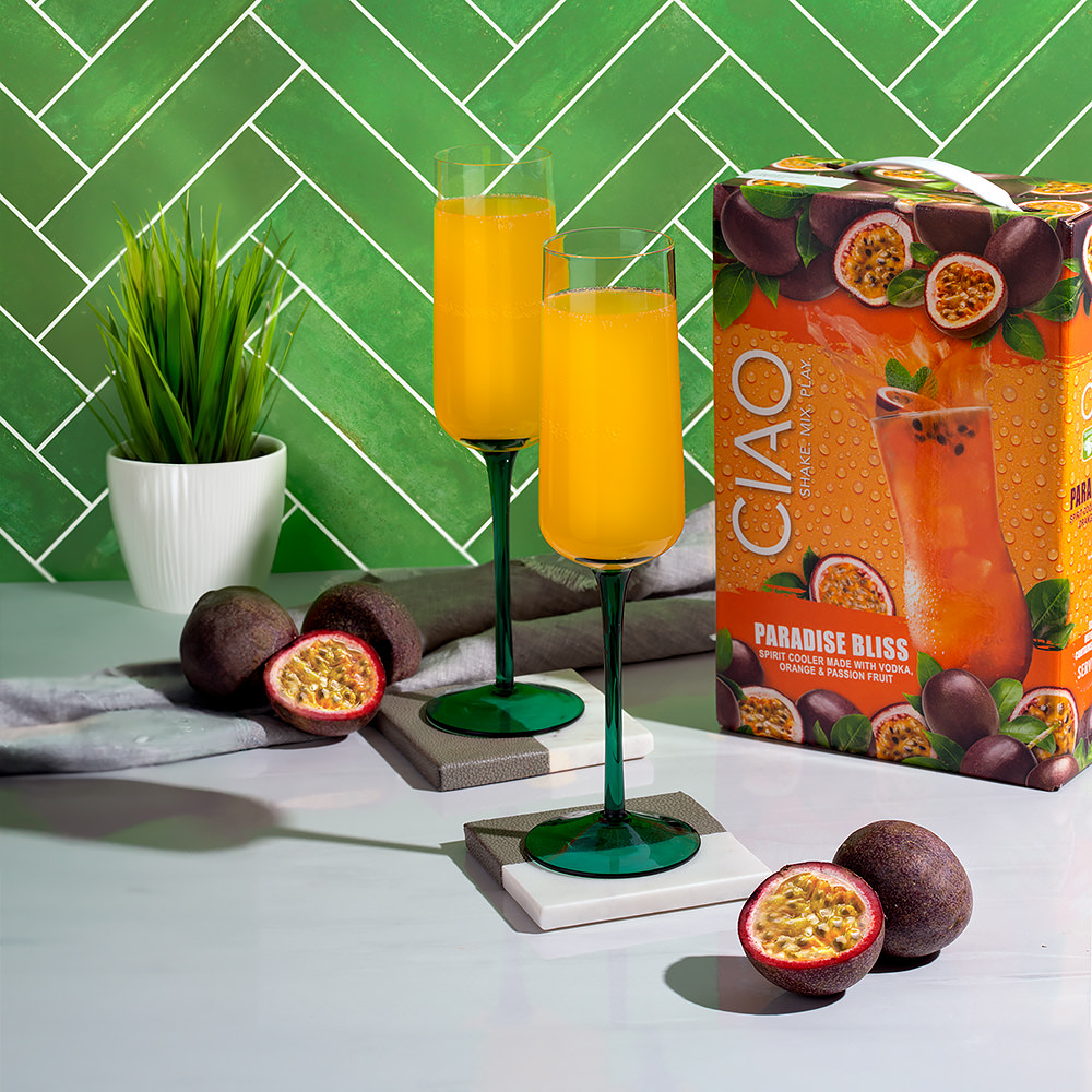 Fill a chilled flute with 2 parts Ciao Paradise Bliss and top up with 1 part MCC Brut for a delightful effervescence.